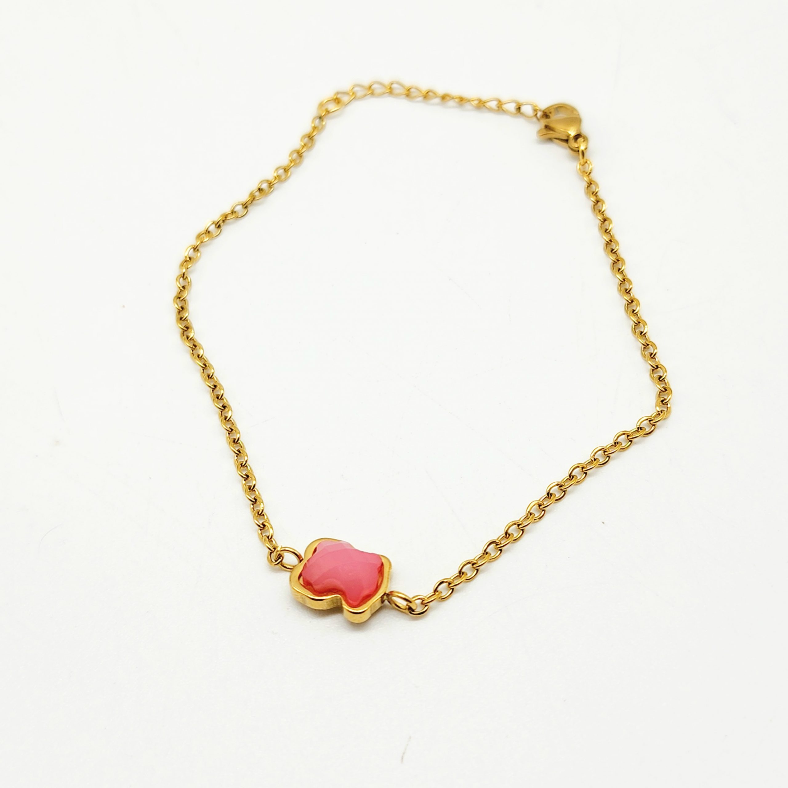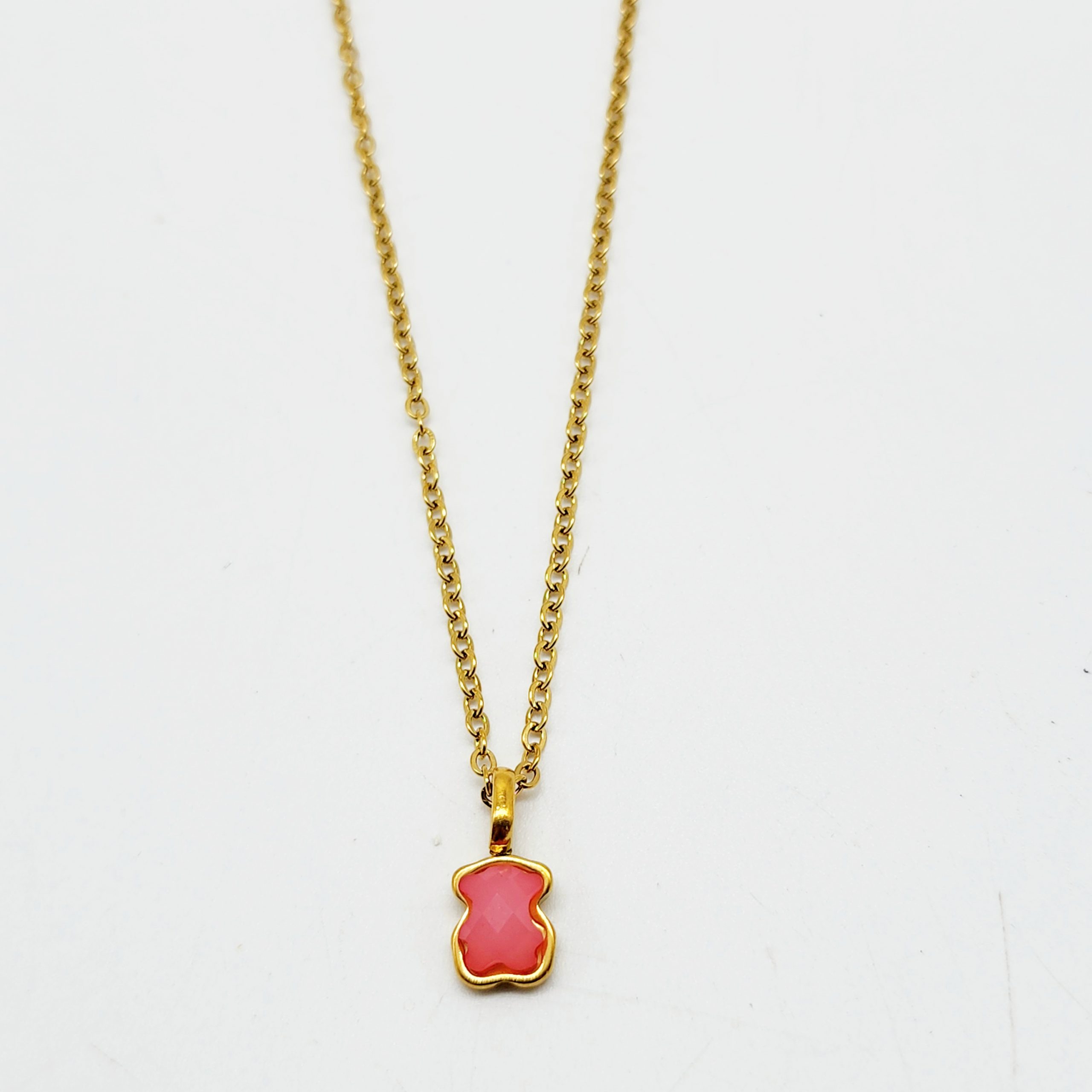 Sed con Pulsera de 21 cm, collar 45cm + 4cm ext y aretes 6 osos rosas geom (3 piezas).